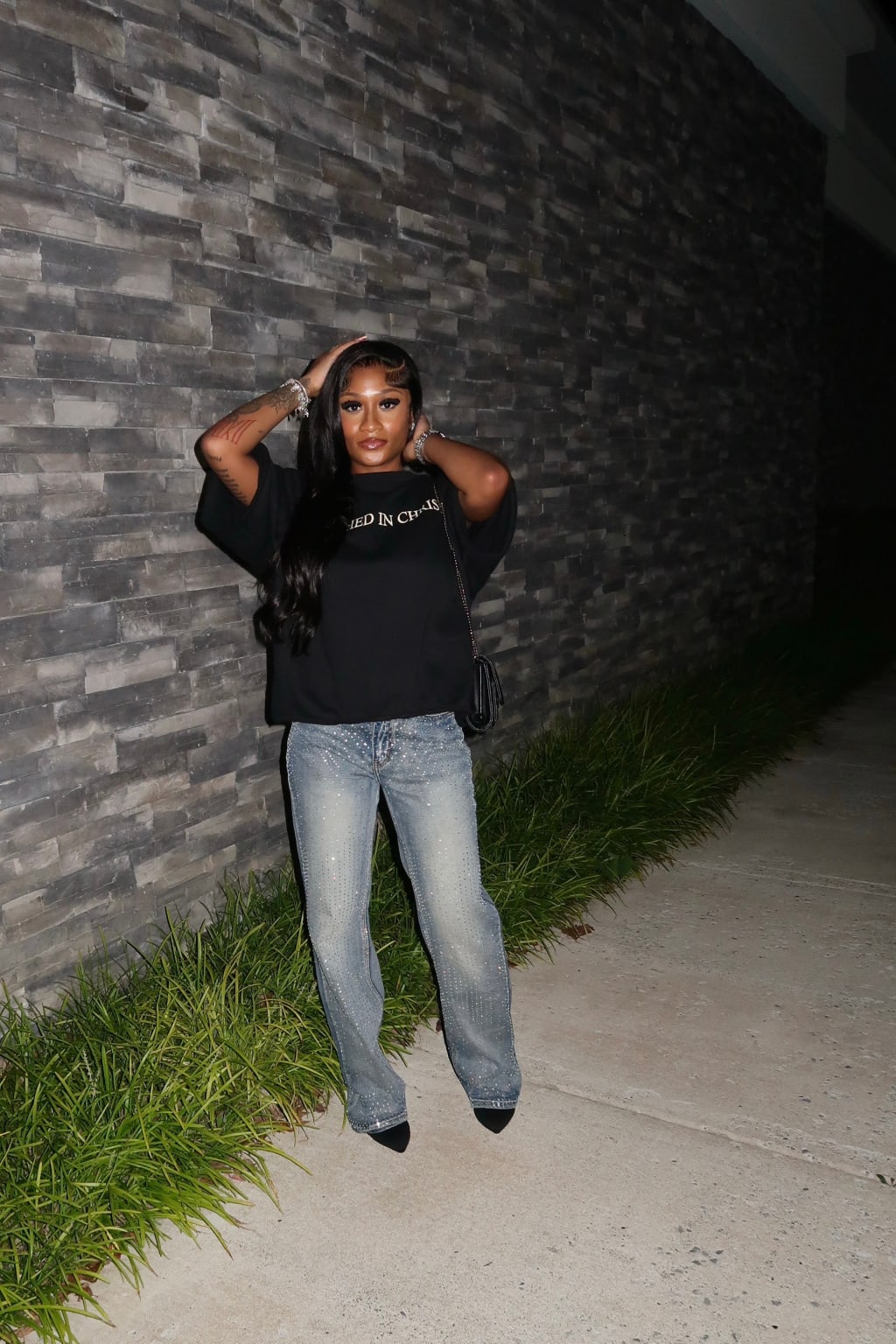 Absolutely love this shirt! The rhinestones catch the light beautifully, and the fit is so soft and comfortable. Perfect for elevating my everyday look.